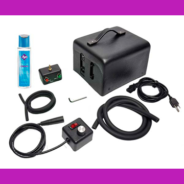 Venus for Men is a high-tech, hands-free masturbation machine that creates powerful stroking action. Durably built, Venus is portable, compact (6” x 8” x 9.5” – 11 pounds) and quiet. It operates on standard dual-voltage electricity (120v or 240v) so it can be used all over the world. The Venus machine is an unmarked black box with a convenient handle for carrying. Attachments and the air box are connected with a 4’ hose set, and the remote control provides a 4’ cable length as well. Set-up takes less than two minutes, and our storage bag can accommodate all your accessories.